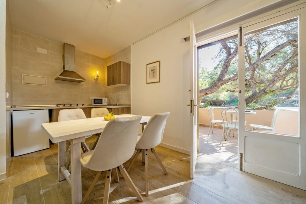 Anche nei dintorni del pittoresco villaggio di Es Caló de Sant Agustí, troviamo diversi complessi di appartamenti turistici. Anche in questo caso si passa da alloggi semplici a prezzo accessibile, per arrivare a suite moderne molto confortevoli. Queste strutture combinano una posizione perfetta per esplorare le meraviglie naturali dell’isola, con la comodità di poter accedere al paese e ai ristoranti locali, che preparano una deliziosa paella di pesce e frutti di mare. Le pinete di questa zona offrono un ambiente tranquillo e fresco, ideale per le giornate estive. Sono inoltre perfette per chi ama trascorrere del tempo all’aria aperta e desidera fare escursioni lungo i sentieri di trekking, per esempio per arrivare al punto panoramico del Mirador di Formentera. Le spiagge più vicine sono Ses Plagetes, accanto al paese di Es Caló, oppure Es Arenals, sul versante sud di Playa Migjorn.